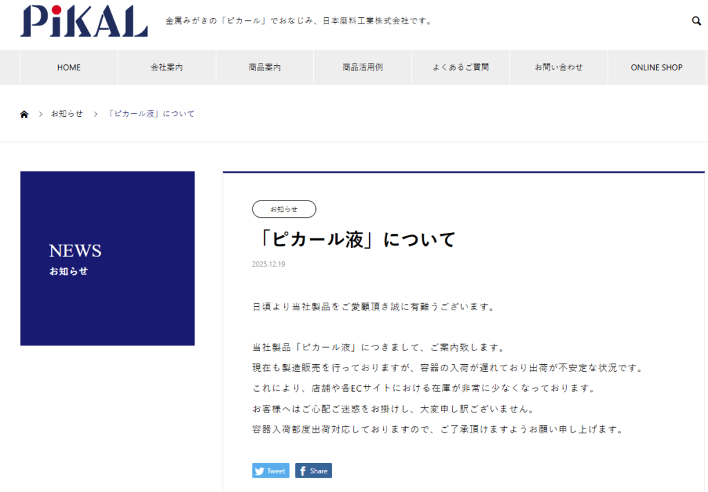 ピカール製造中止?? →ちがう 一時的な供給不足 December 19, 2025 NEWS https://amzn.to/45968gJ 何これ?めっちゃ高騰してる 私が以前買ったときの値段を貼っておきますね 注文日 2018年7月12日