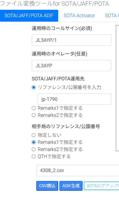 ファイル変換ツールfor SOTA/JAFF/POTA